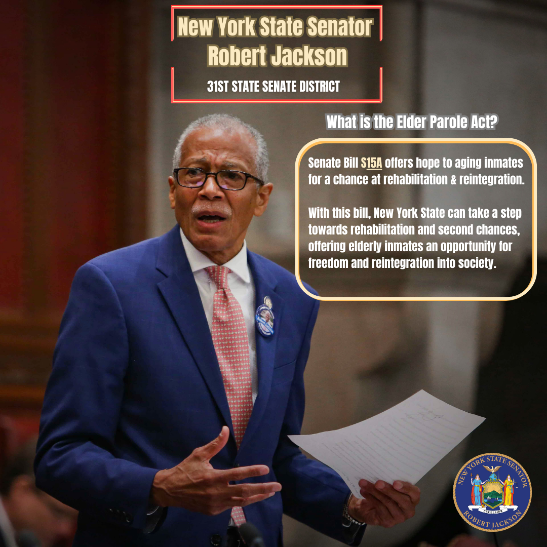 The Bill of the Week is S15A, the Elder Parole Act, sponsored by my colleague Senator Brad Holyman. With this bill, New York State can take a step towards rehabilitation and second chances offering elderly inmates a chance for freedom and reintegration into society.