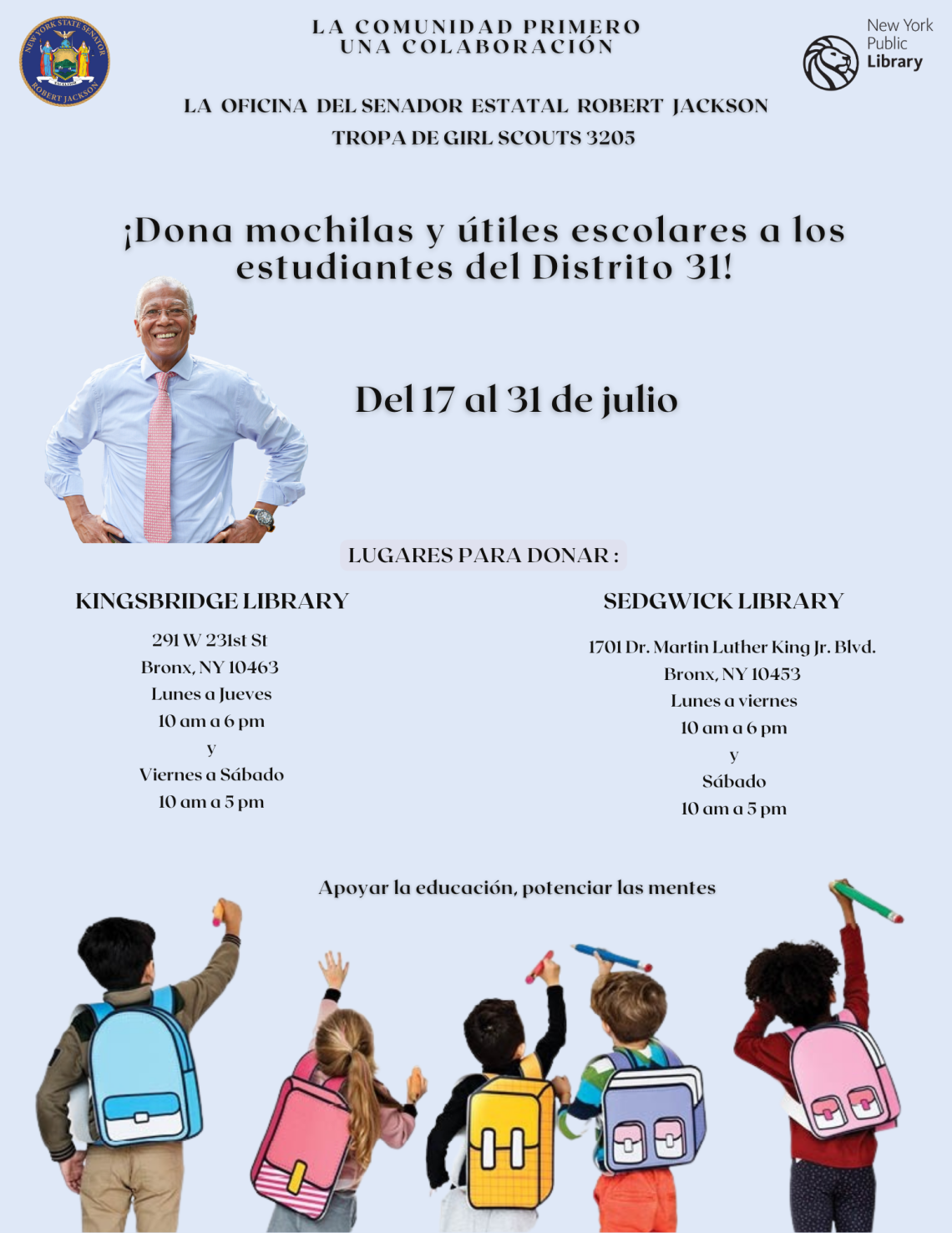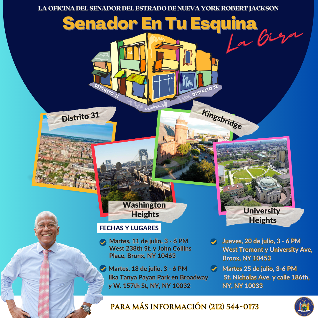 Compartiendo los servicios de apoyo a los inquilinos y promoviendo el derecho a organizarse, podemos crear un panorama de la vivienda más equitativo y sostenible, que dé lugar a comunidades prósperas e incluyentes. Espero colaborar con ustedes en la lucha por proteger y mejorar los derechos de los inquilinos en nuestras comunidades. Si quieres participar y compartir ideas, envía un correo electrónico a mi oficina: jackson@nysenate.gov.