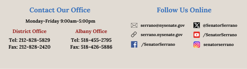 As always, my office remains available to assist you with any issues or concerns. Please do not hesitate to reach out. You can call us at 212-828-5829, or visit us Monday through Friday, 9am–5pm at 335 E 100th St.